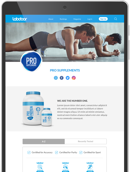 Labdoor Certified companies receive a customizable company profile on Labdoor.com that features all products tested by Labdoor.