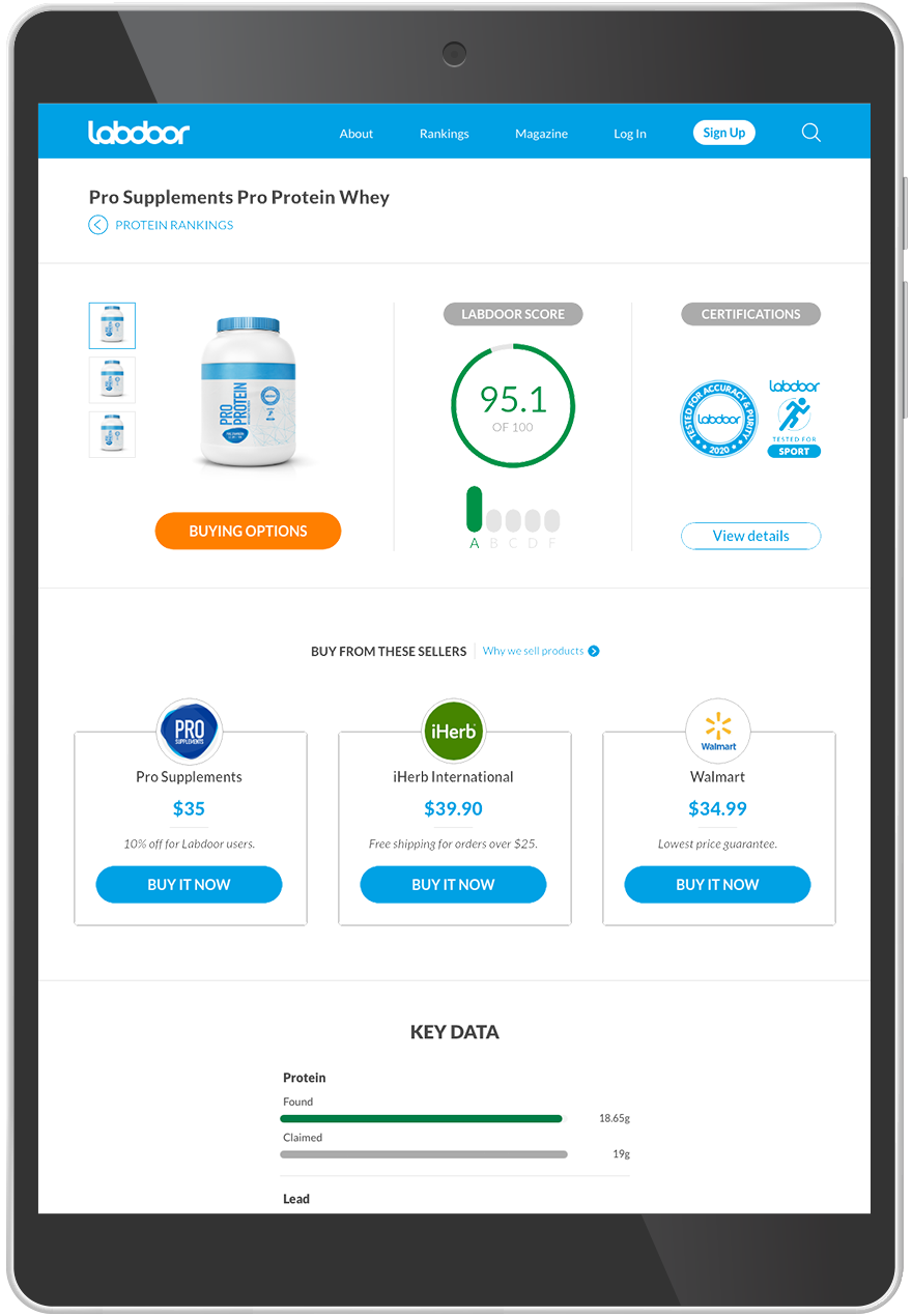 Labdoor takes the guesswork out of the way for its users, providing real science reports and chemical analysis tested products. After deciding which products to buy, Labdoor users have only one last thing to do, select on your available "Buy Now" button and finalize the purchase. With conversion rates that average 22% the single missing piece is your button, as a buying option for our users.